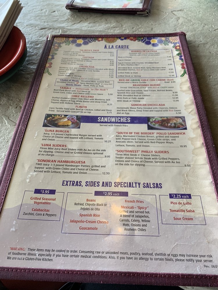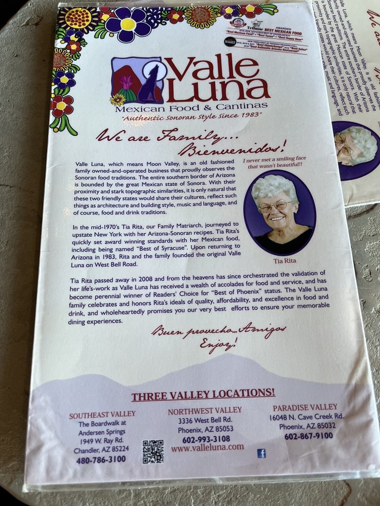 Valle Luna - Southeast Valley Menu (2025 Update)